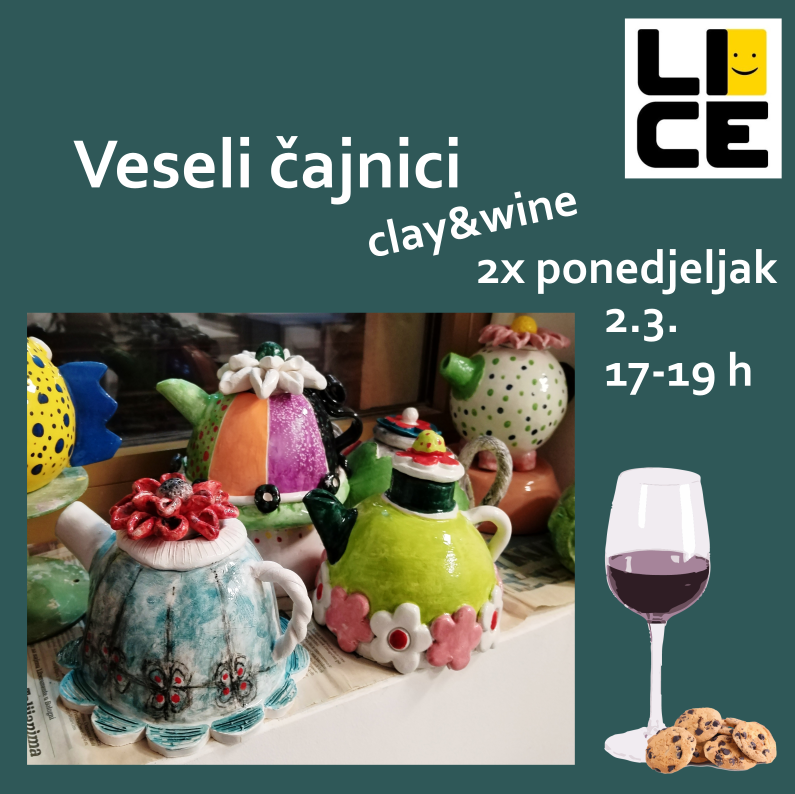 Šarena putar-doza; 21.2., 17-19. Subotnja clay&wine radionica; nije potrebno predznanje ni poseban talent. Broj mjesta ograničen.