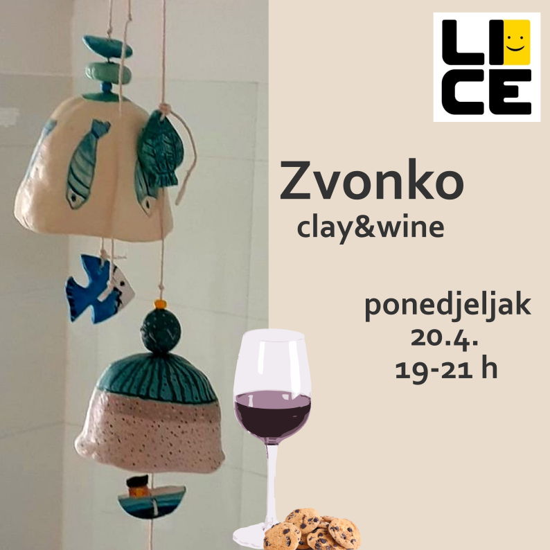 Zvonko, clay&wine, 19-21 h – izrađujemo zvona od gline – male mobile koji će unositi zvuk, pokret i radost u vaš prostor. Dok oblikujemo glinu, neka zazvoni veselje, kreativnost i dobra energija. Nakon izrade, elementi će se ispeći i glazirati, a kada budu gotovi od njih ćemo sastaviti našu jedinstvenu visilicu koja će zvoniti na vjetru i podsjećati na ovu lijepu radionicu. 🔔💛